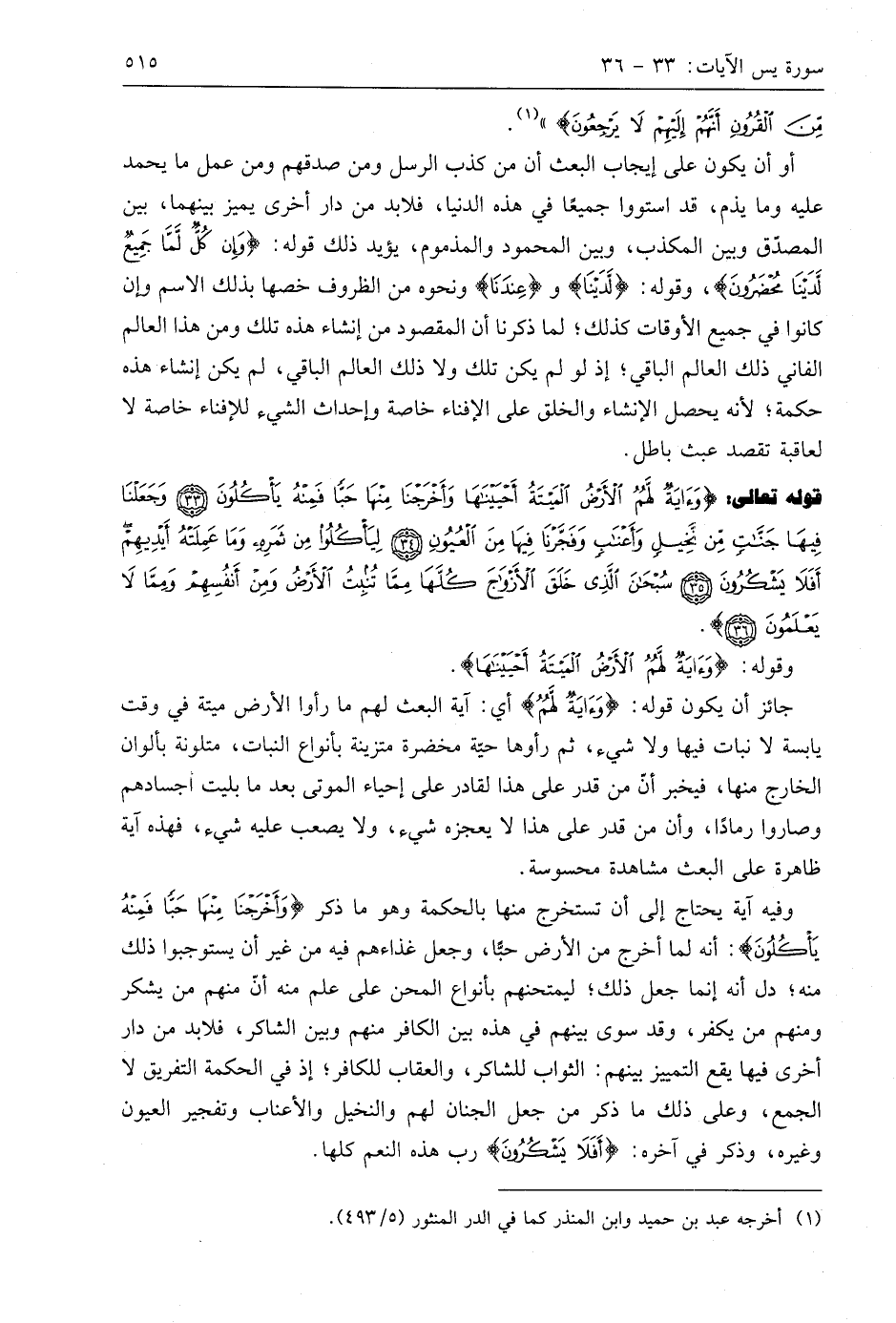 وقوله: (وَآيَةٌ لَهُمُ الْأَرْضُ الْمَيْتَةُ أَحْيَيْنَاهَا).