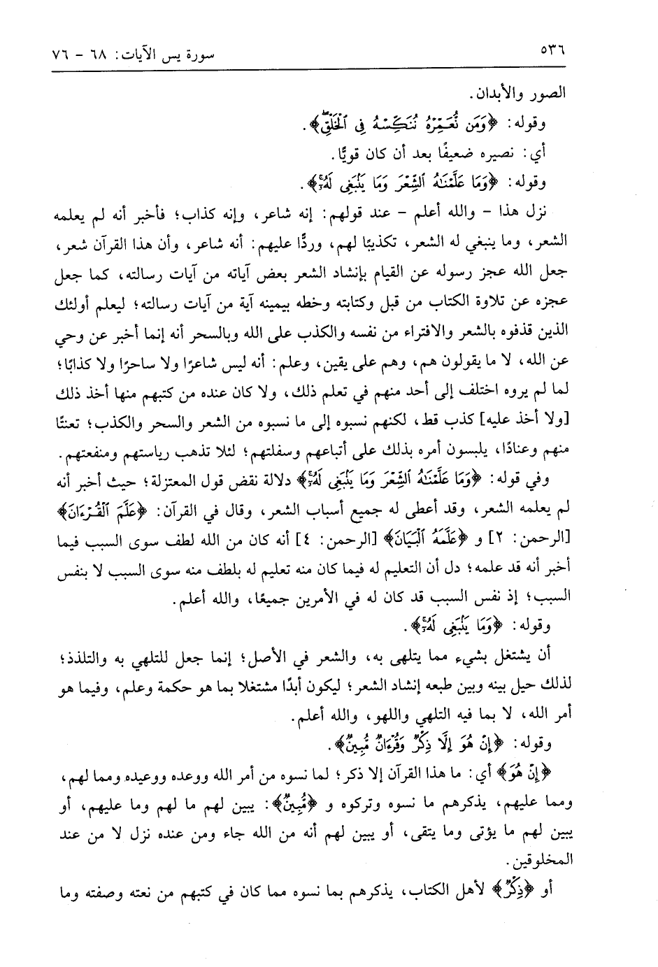 وقوله: (وَمَا عَلَّمْنَاهُ الشِّعْرَ وَمَا يَنْبَغِي لَهُ ... (69)