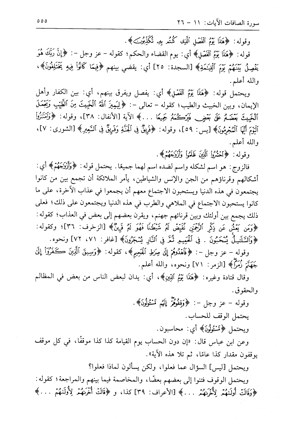 وعن ابن عَبَّاسٍ قال: " إن دون الحساب يوم القيامة كذا كذا موقفًا، في كل موقف يوقفون مقدار كذا عامًا، ثم تلا هذه الآية ".
