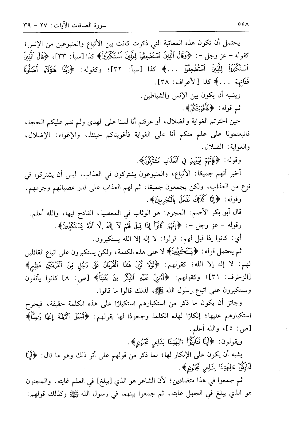 ثم يحتمل قوله: (يَسْتَكْبِرُونَ) لا على هذه الكلمة، ولكن يستكبرون على اتباع القائلين لهم: لَا إِلَهَ إِلَّا اللَّهُ؛ كقولهم: (لَوْلَا نُزِّلَ هَذَا الْقُرْآنُ عَلَى رَجُلٍ مِنَ الْقَرْيَتَيْنِ عَظِيمٍ)؛ وكقولهم: (أَأُنْزِلَ عَلَيْهِ الذِّكْرُ مِنْ بَيْنِنَا)، كانوا يأنفون ويستكبرون على اتباع رسول اللَّه - صَلَّى اللَّهُ عَلَيهِ وَسَلَّمَ -، لذلك قالوا ما قالوا.
