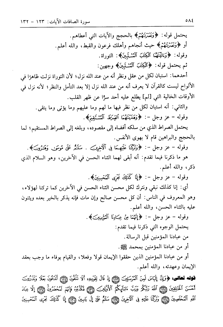 وقوله: (وَآتَيْنَاهُمَا الْكِتَابَ الْمُسْتَبِينَ (117) التوراة.