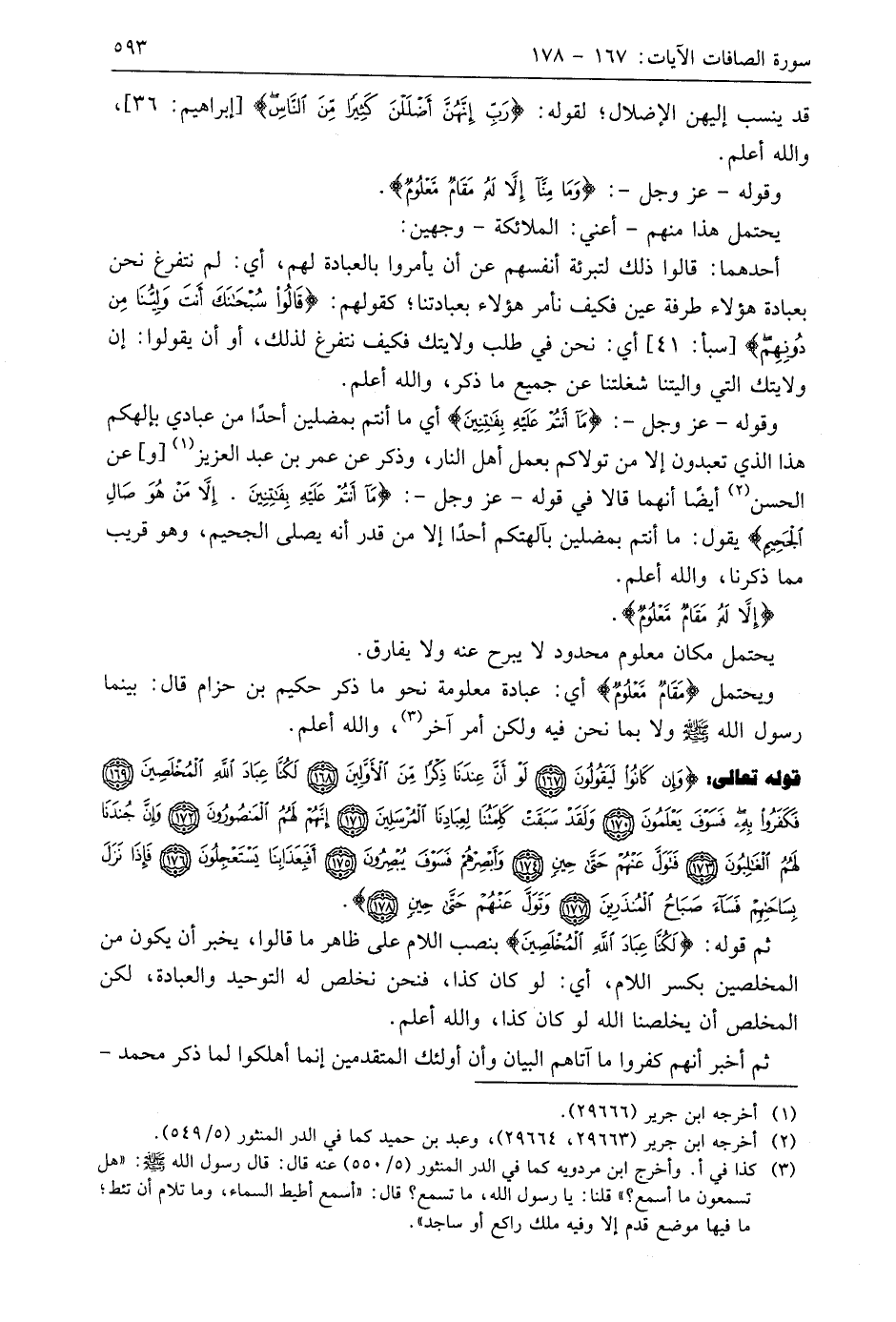 وقوله - عَزَّ وَجَلَّ -: (وَمَا مِنَّا إِلَّا لَهُ مَقَامٌ مَعْلُومٌ (164)