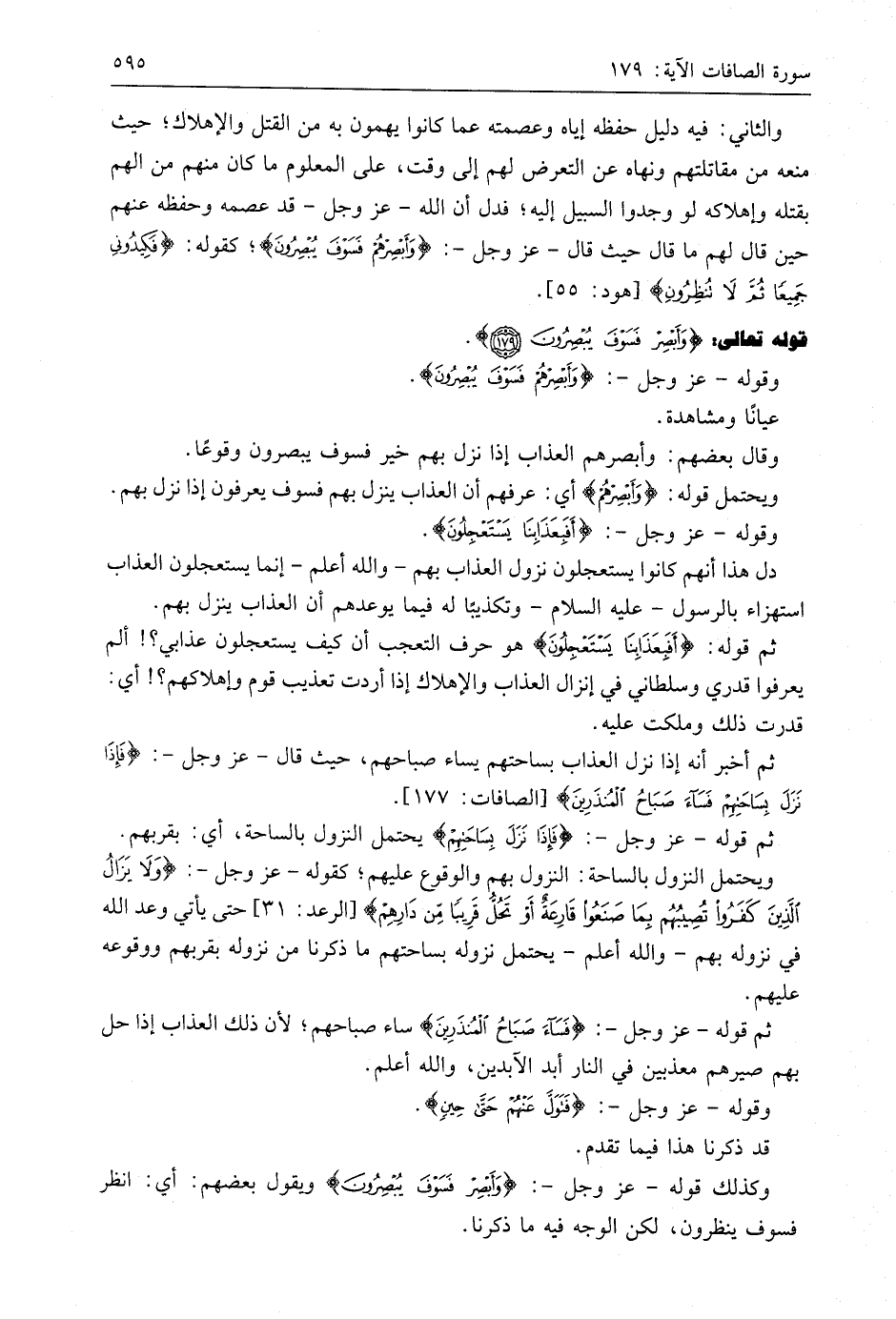 وكذلك قوله - عَزَّ وَجَلَّ -: (وَأَبْصِرْ فَسَوْفَ يُبْصِرُونَ (179) ويقول بعضهم: أي: انظر فسوف ينظرون، لكن الوجه فيه ما ذكرنا.