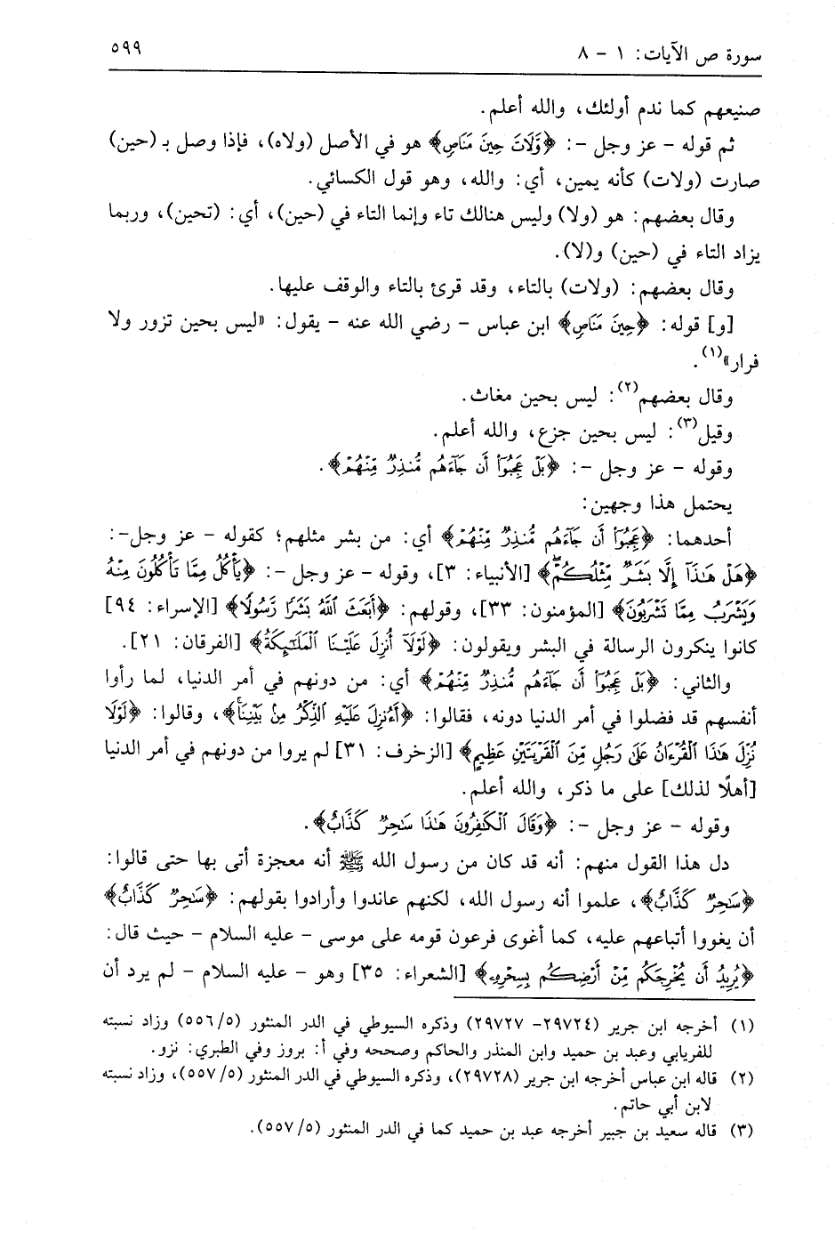 وقوله: (حِينَ مَنَاصٍ) ابن عَبَّاسٍ - رَضِيَ اللَّهُ عَنْهُ - يقول: " ليس بحين تزور ولا فرار ".