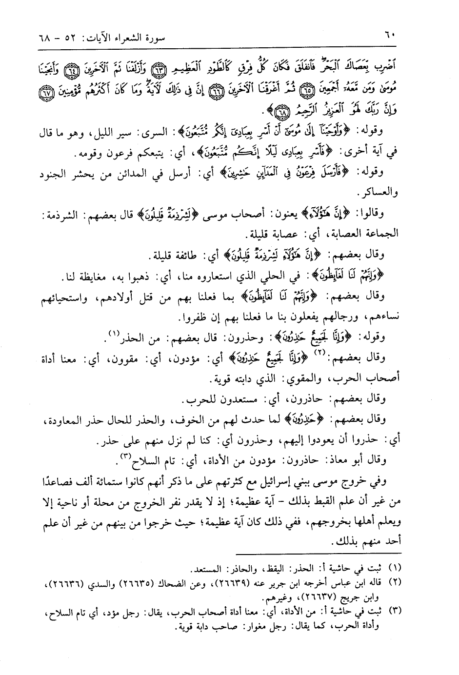 وقوله: (وَأَوْحَيْنَا إِلَى مُوسَى أَنْ أَسْرِ بِعِبَادِي إِنَّكُمْ مُتَّبَعُونَ (52) السرى: سير الليل، وهو ما قال في آية أخرى: (فَأَسْرِ بِعِبَادِي لَيْلًا إِنَّكُمْ مُتَّبَعُونَ)، أي: يتبعكم فرعون وقومه.