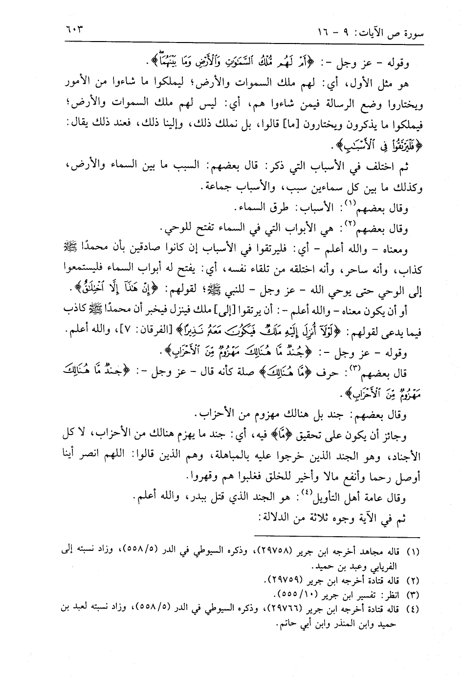 قَالَ بَعْضُهُمْ: حرف (مَا هُنَالِكَ) صلة كأنه قال - عَزَّ وَجَلَّ -: (جُنْدٌ مَا هُنَالِكَ مَهْزُومٌ مِنَ الْأَحْزَابِ).