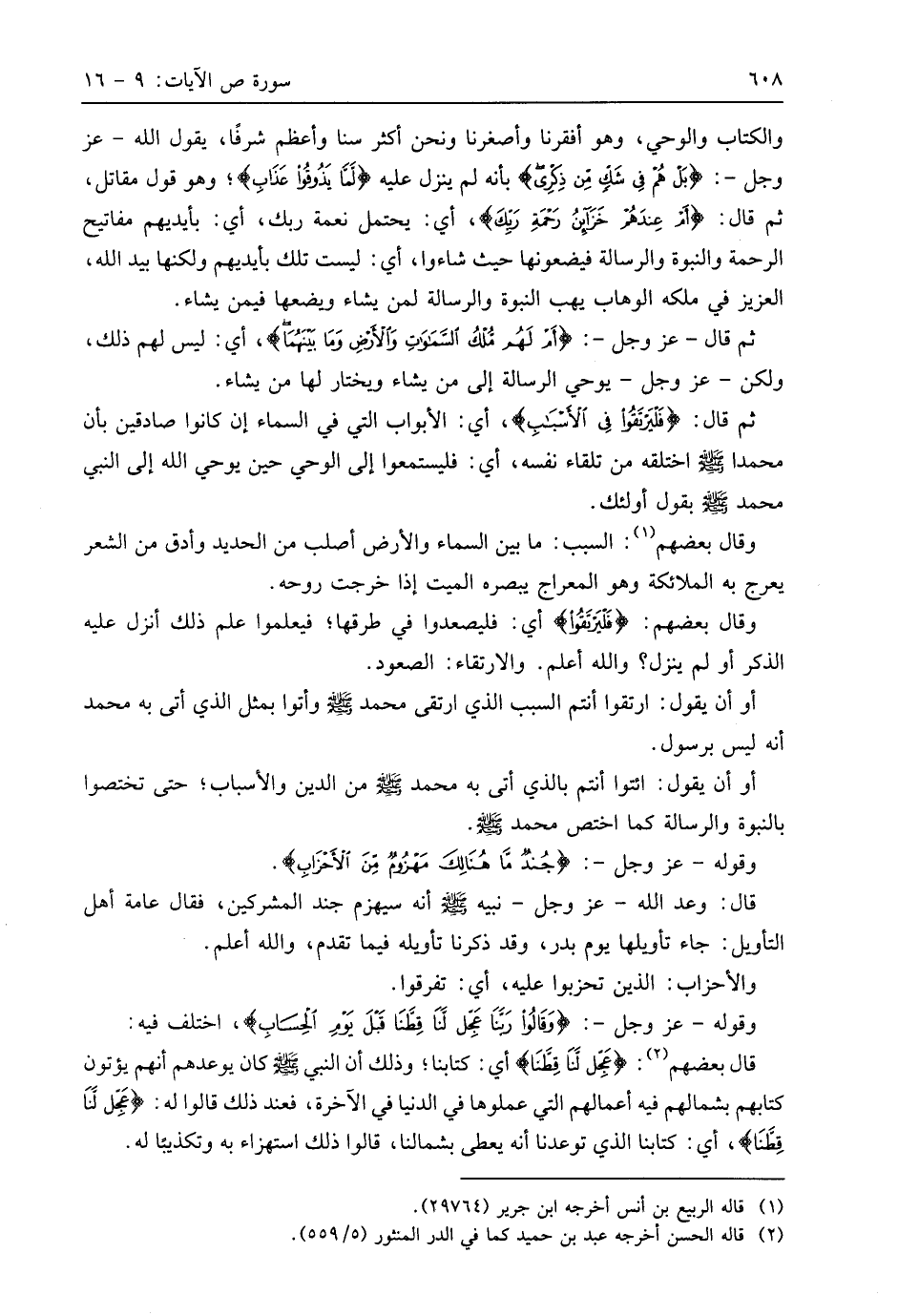 ثم قال: (فَلْيَرْتَقُوا فِي الْأَسْبَابِ)، أي: الأبواب التي في السماء إن كانوا صادقين بأن محمداً - صَلَّى اللَّهُ عَلَيهِ وَسَلَّمَ - اختلقه من تلقاء نفسه، أي: فليستمعوا إلى الوحي حين يوحي اللَّه إلى النبي مُحَمَّد - صَلَّى اللَّهُ عَلَيهِ وَسَلَّمَ - بقول أُولَئِكَ.