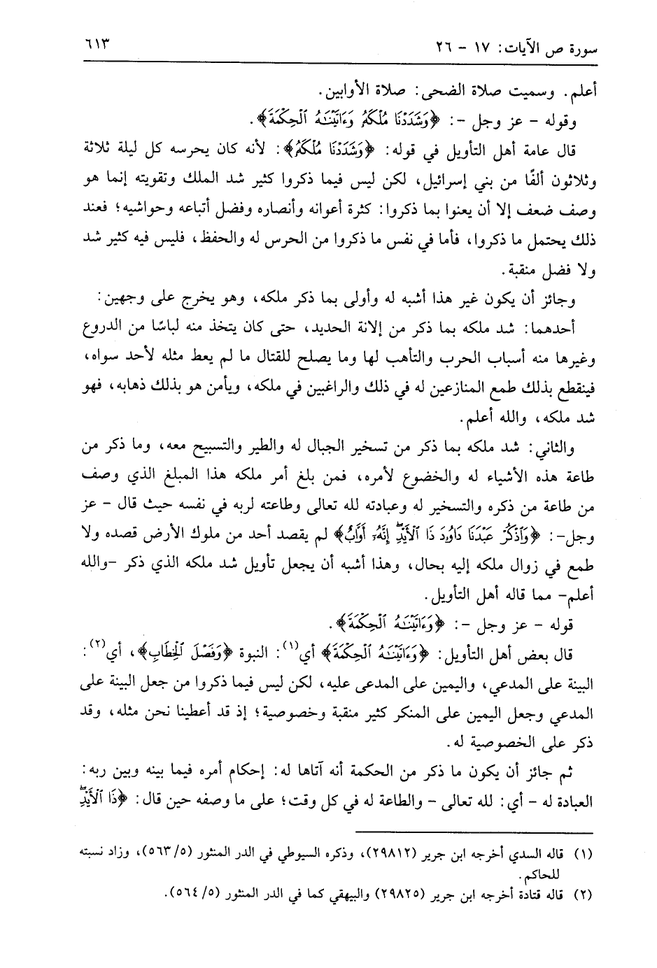 وقوله - عَزَّ وَجَلَّ -: (وَشَدَدْنَا مُلْكَهُ وَآتَيْنَاهُ الْحِكْمَةَ وَفَصْلَ الْخِطَابِ (20)