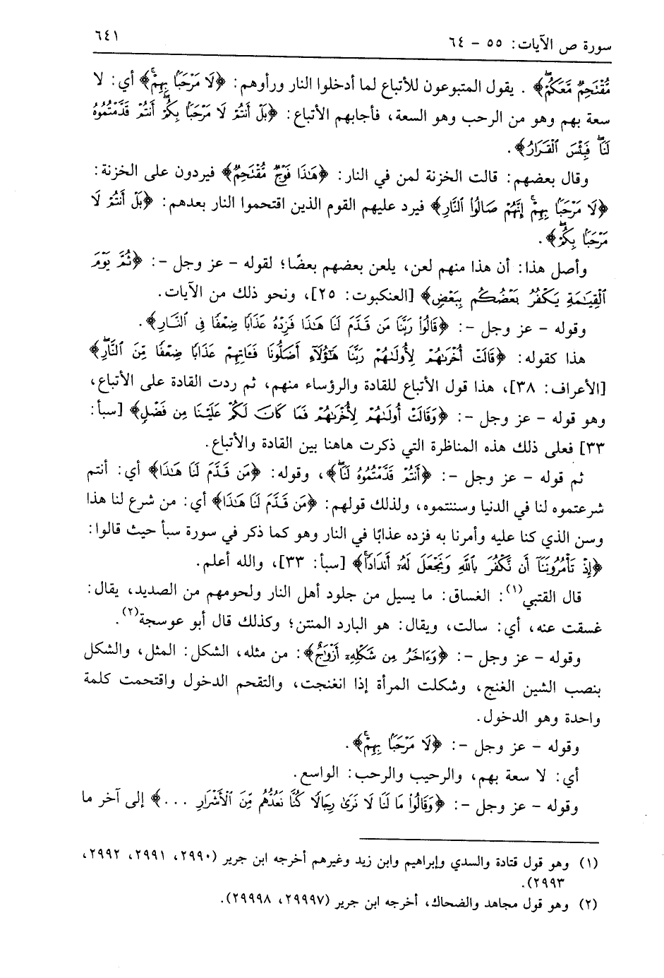 مُقْتَحِمٌ مَعَكُمْ ... (59). يقول المتبوعون للأتباع لما أدخلوا النار ورأوهم: (لَا مَرْحَبًا بِهِمْ) أي: لا سعة بهم وهو من الرحب وهو السعة، فأجابهم الأتباع: (بَلْ أَنْتُمْ لَا مَرْحَبًا بِكُمْ أَنْتُمْ قَدَّمْتُمُوهُ لَنَا فَبِئْسَ الْقَرَارُ (60).