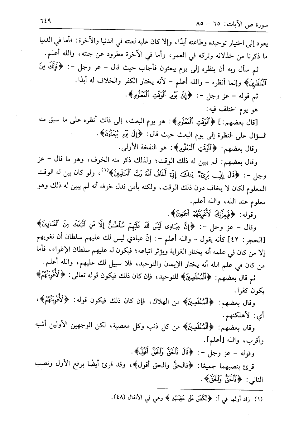 ثم قَالَ بَعْضُهُمْ: (الْمُخْلَصِينَ (83) للتوحيد، فإن كان ذلك فيكون قوله تعالى: (لَأُغْوِيَنَّهُمْ) يكون كفرا.