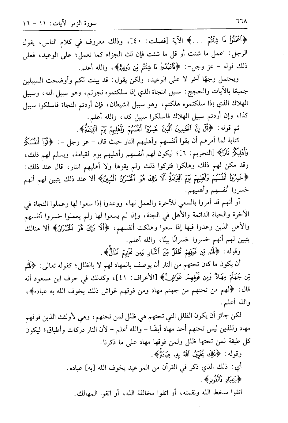 وقوله: (لَهُمْ مِنْ فَوْقِهِمْ ظُلَلٌ مِنَ النَّارِ وَمِنْ تَحْتِهِمْ ظُلَلٌ ... (16)