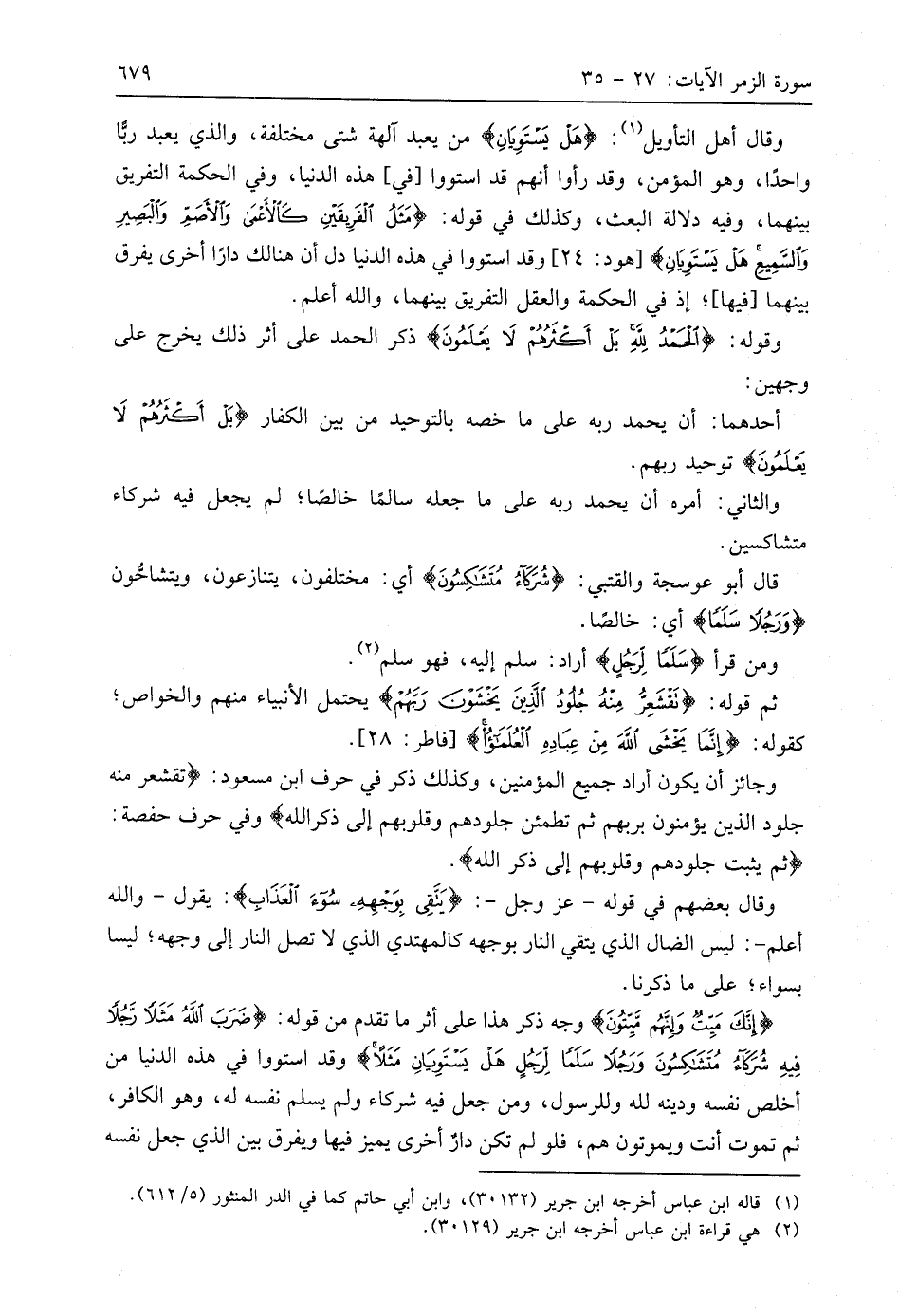 قال أَبُو عَوْسَجَةَ والْقُتَبِيّ: (شُرَكَاءُ مُتَشَاكِسُونَ) أي: مختلفون، يتنازعون، ويتشاحُّون (وَرَجُلًا سَلَمًا) أي: خالصًا.