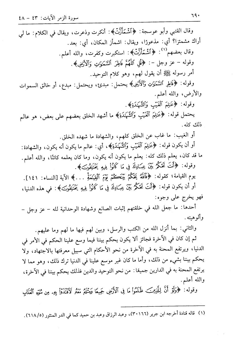 وقوله - عَزَّ وَجَلَّ -: (قُلِ اللَّهُمَّ فَاطِرَ السَّمَاوَاتِ وَالْأَرْضِ عَالِمَ الْغَيْبِ وَالشَّهَادَةِ أَنْتَ تَحْكُمُ بَيْنَ عِبَادِكَ فِي مَا كَانُوا فِيهِ يَخْتَلِفُونَ (46)