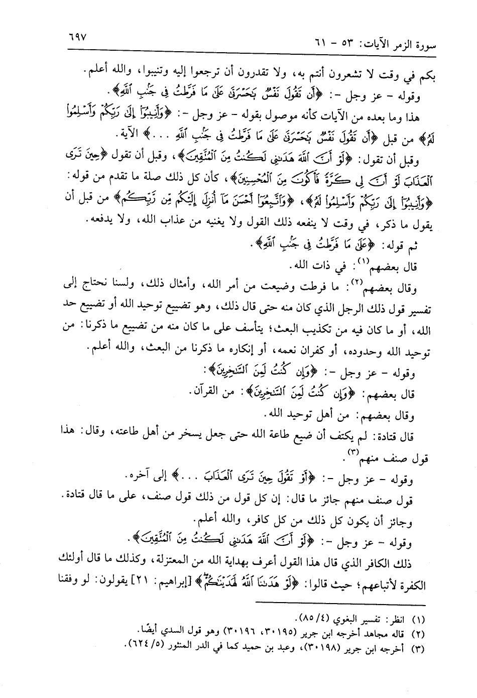 وقوله - عَزَّ وَجَلَّ -: (أَنْ تَقُولَ نَفْسٌ يَا حَسْرَتَى عَلَى مَا فَرَّطْتُ فِي جَنْبِ اللَّهِ وَإِنْ كُنْتُ لَمِنَ السَّاخِرِينَ (56)