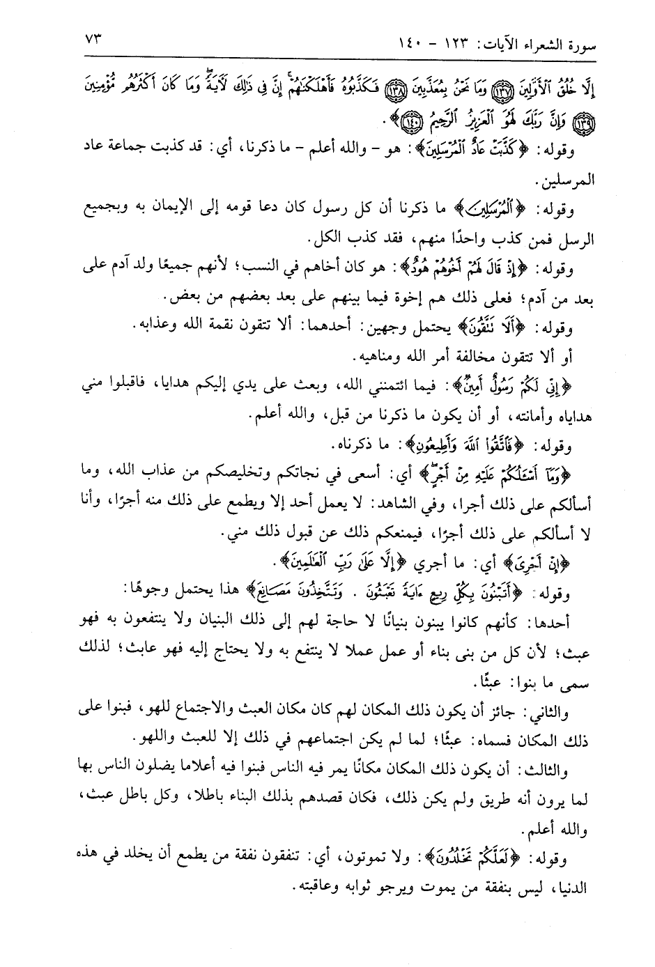 وقوله أن (أَتَبْنُونَ بِكُلِّ رِيعٍ آيَةً تَعْبَثُونَ (128) وَتَتَّخِذُونَ مَصَانِعَ ... (129) هذا يحتمل وجوهًا: