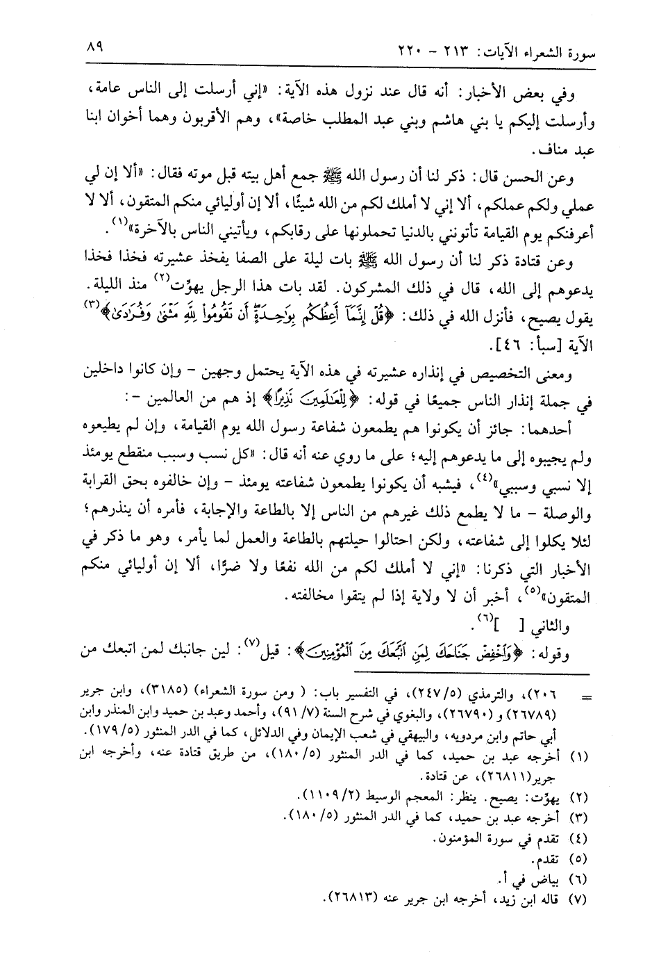 وفي بعض الأخبار: أنه قال عند نزول هذه الآية: " إني أرسلت إلى الناس عامة، وأرسلت إليكم يا بني هاشم وبني عبد المطلب خاصة "، وهم الأقربون وهما أخوان ابنا عبد مناف.