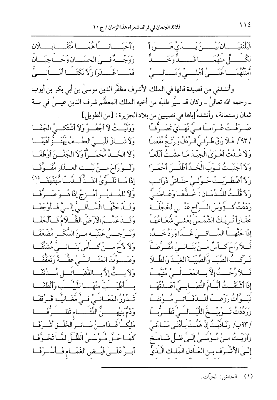 /93 ب/ وناديت إن همت بأدنى مساءتي ... مليكًا غدا من سائر الخلق أشرفا