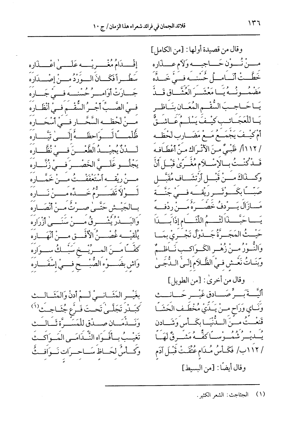/112 ب/ فكأس مدامٍ عتَّقت قبل آدمٍ ... وكأس لحاظ ساحرات نوافث