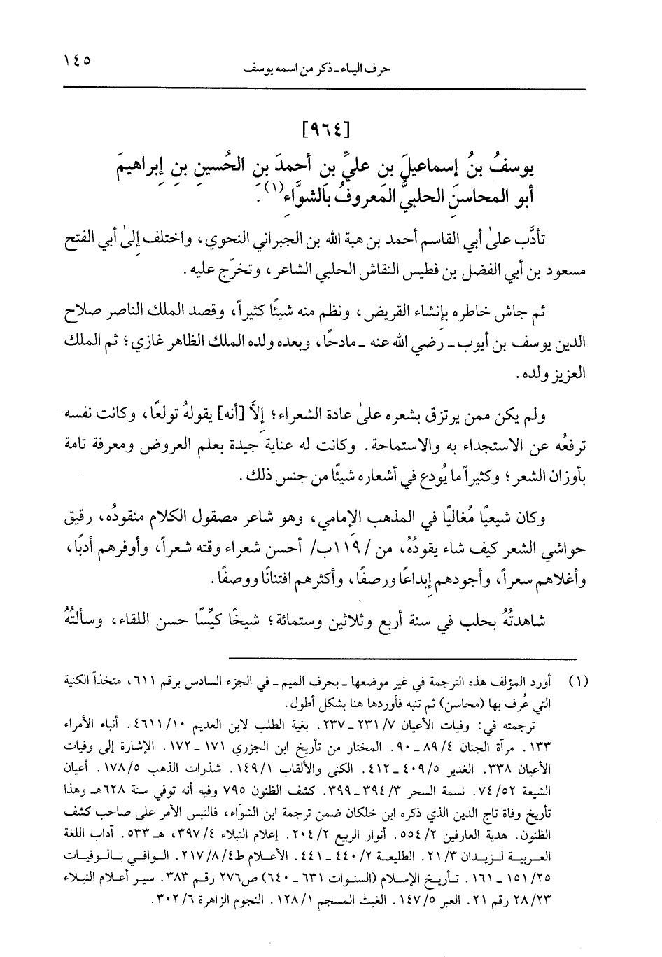 يوسف بن إسماعيل بن علِّي بن أحمد بن الحسين بن إبراهيم أبو المحاسن الحلبُّي المعروف بالشوَّاء.