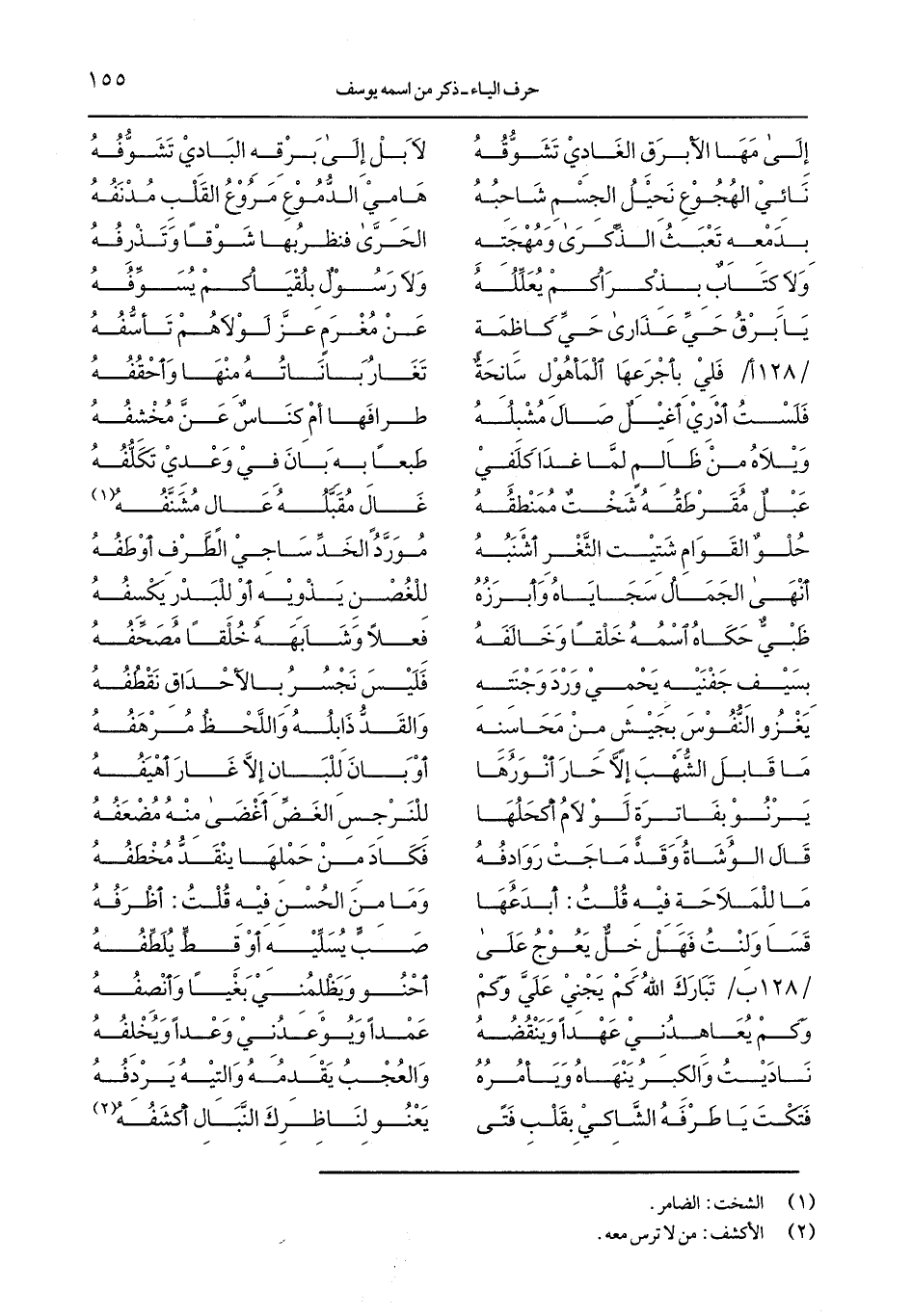 /128 ب/ تبارك الله كم يجني عليَّ وكم ... أحنو ويظلمني بغيًا وأنصفه