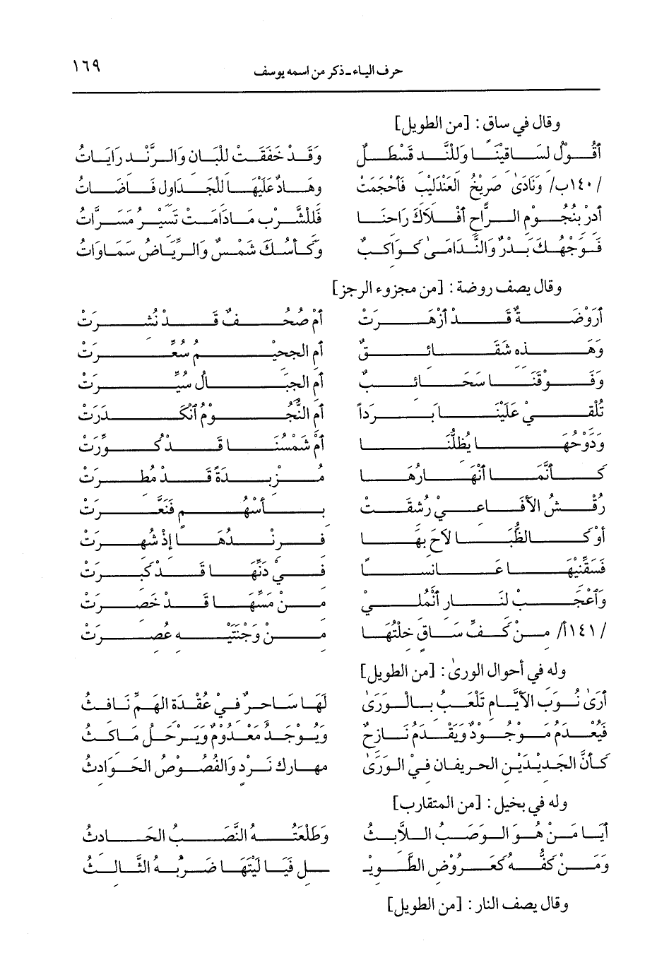 /140 ب/ ونادى صريخ العندليب فأحجمت ... وهاد عليها للجداول فاضات