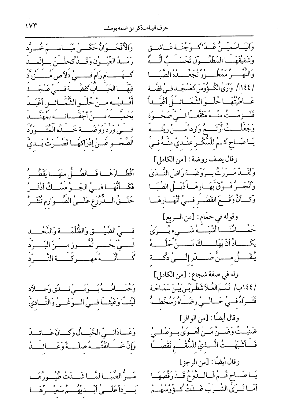/144 أ/ وأرى الكؤوس كعسجد في فضَّة ... فيها الحباب كفضَّة في عسجد