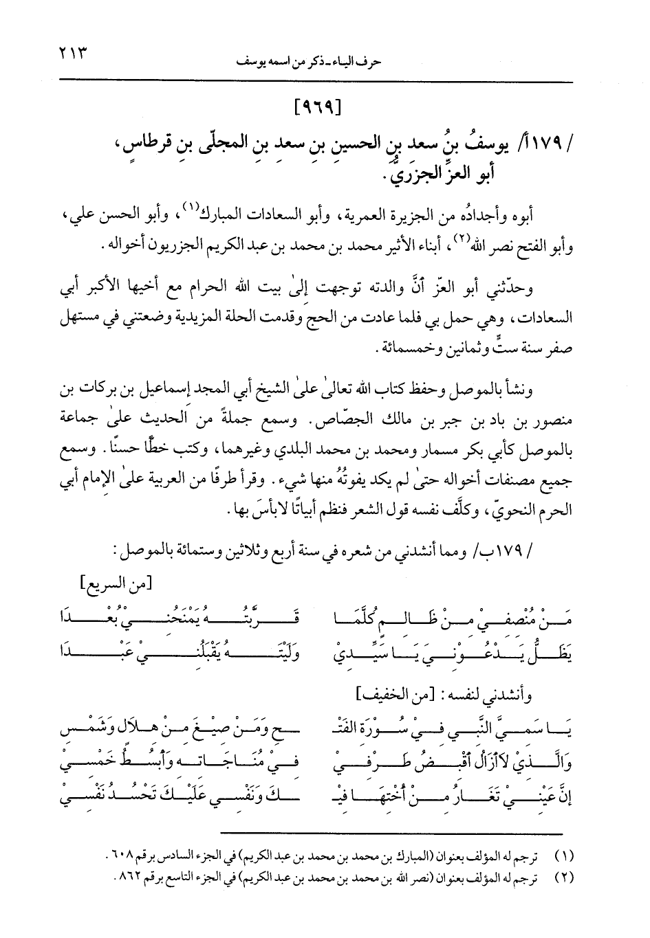 /179 أ/ يوسف بن سعد بن الحسين بن سعد بن المجلّي بن قرطاس، أبو العزِّ الجزريُّ