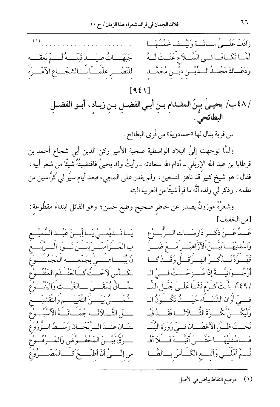 /48 ب/ يحيى بن المقدام بن أبي الفضل بن زيادٍ، أبو الفضل البطائحيُّ.