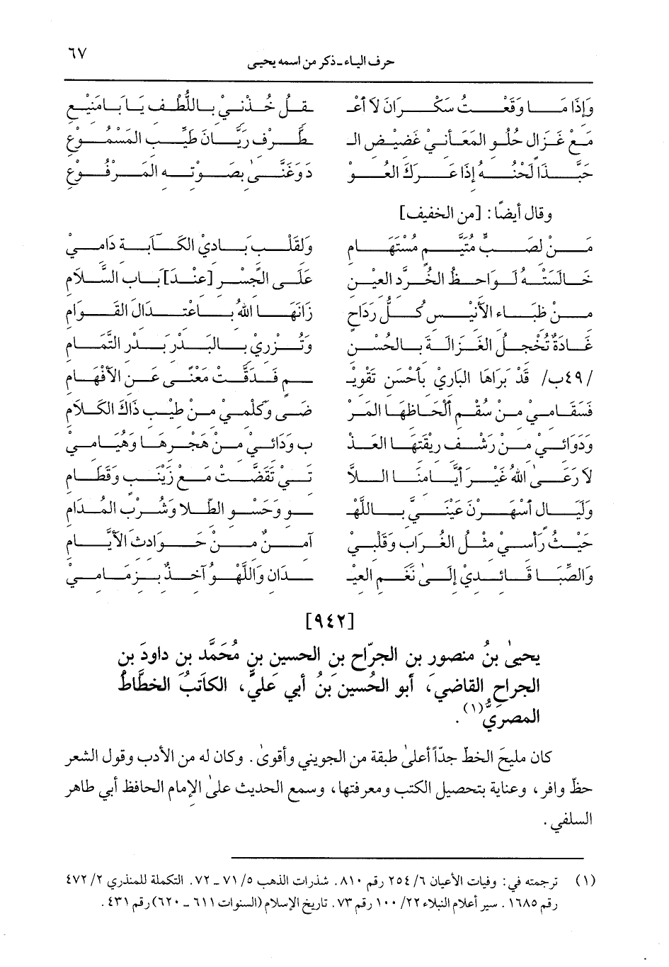 يحيى بن منصور بن الجرّاح بن الحسين بن محمَّد بن داود بن الجراح القاضي، أبو الحسين بن أبي عليٍّ، الكاتب الخطَّاط المصريُّ.