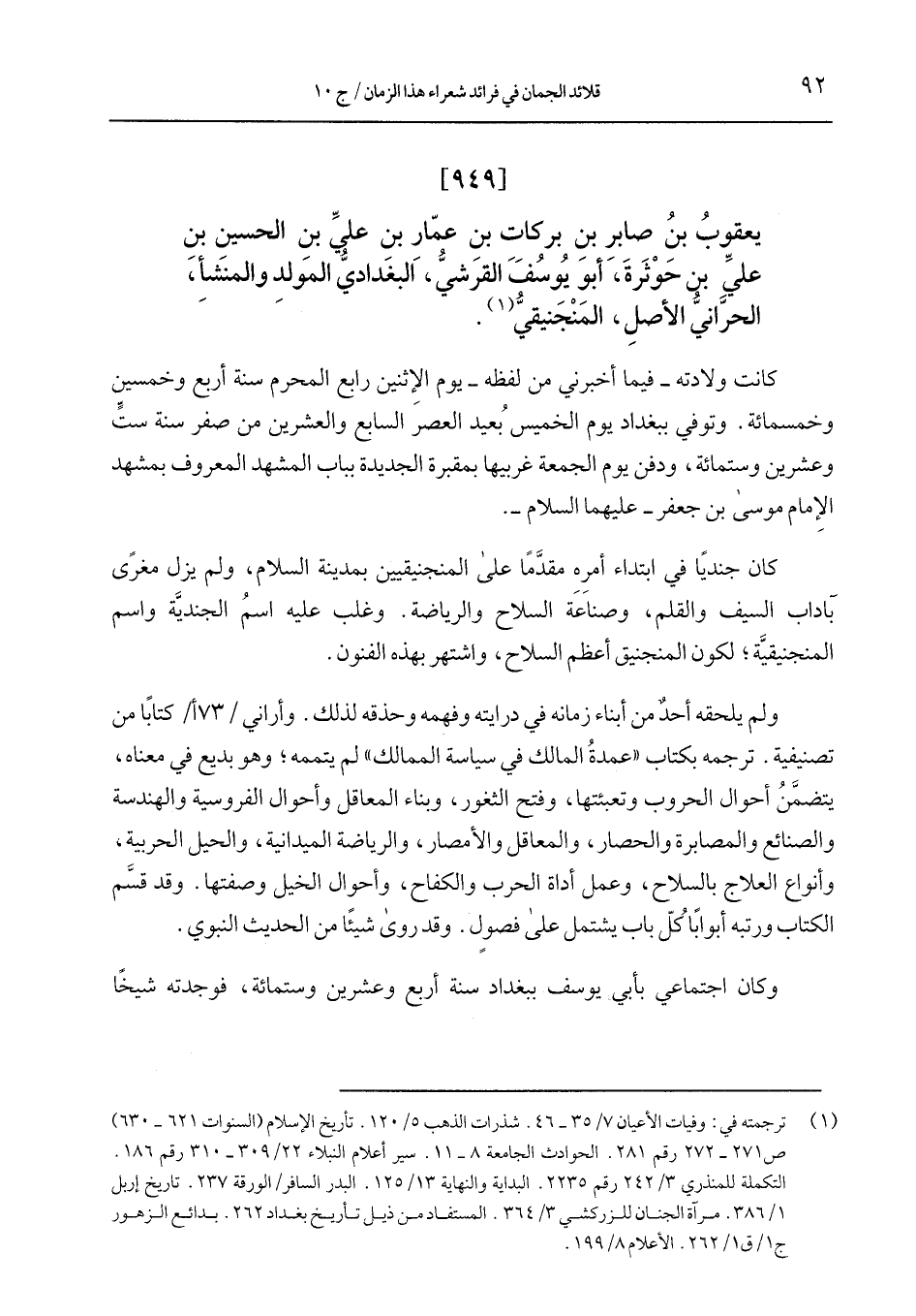 يعقوب بن صابر بن بركات بن عمّار بن عليِّ بن الحسين بن عليِّ بن حوثرة، أبو يوسف القرشيُّ، البغدادي المولد والمنشأ، الحرَّانيُّ الأصل، المنجنيقيُّ.