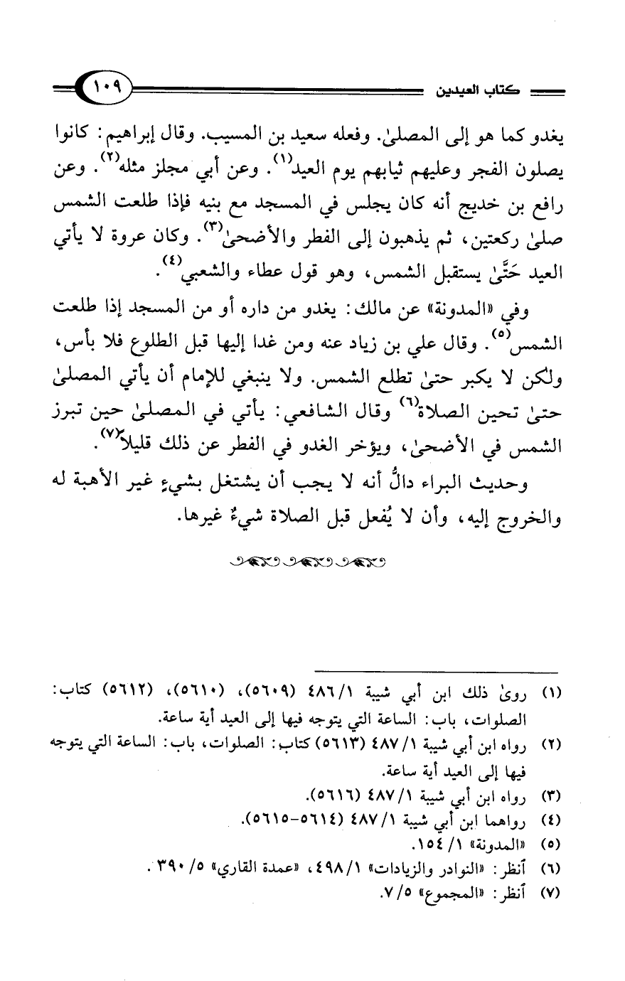 (¬1) روى ذلك ابن أبي شيبة 1/ 486 (5609)، (5610)، (5612) كتاب: الصلوات، باب: الساعة التي يتوجه فيها إلى العيد أية ساعة.