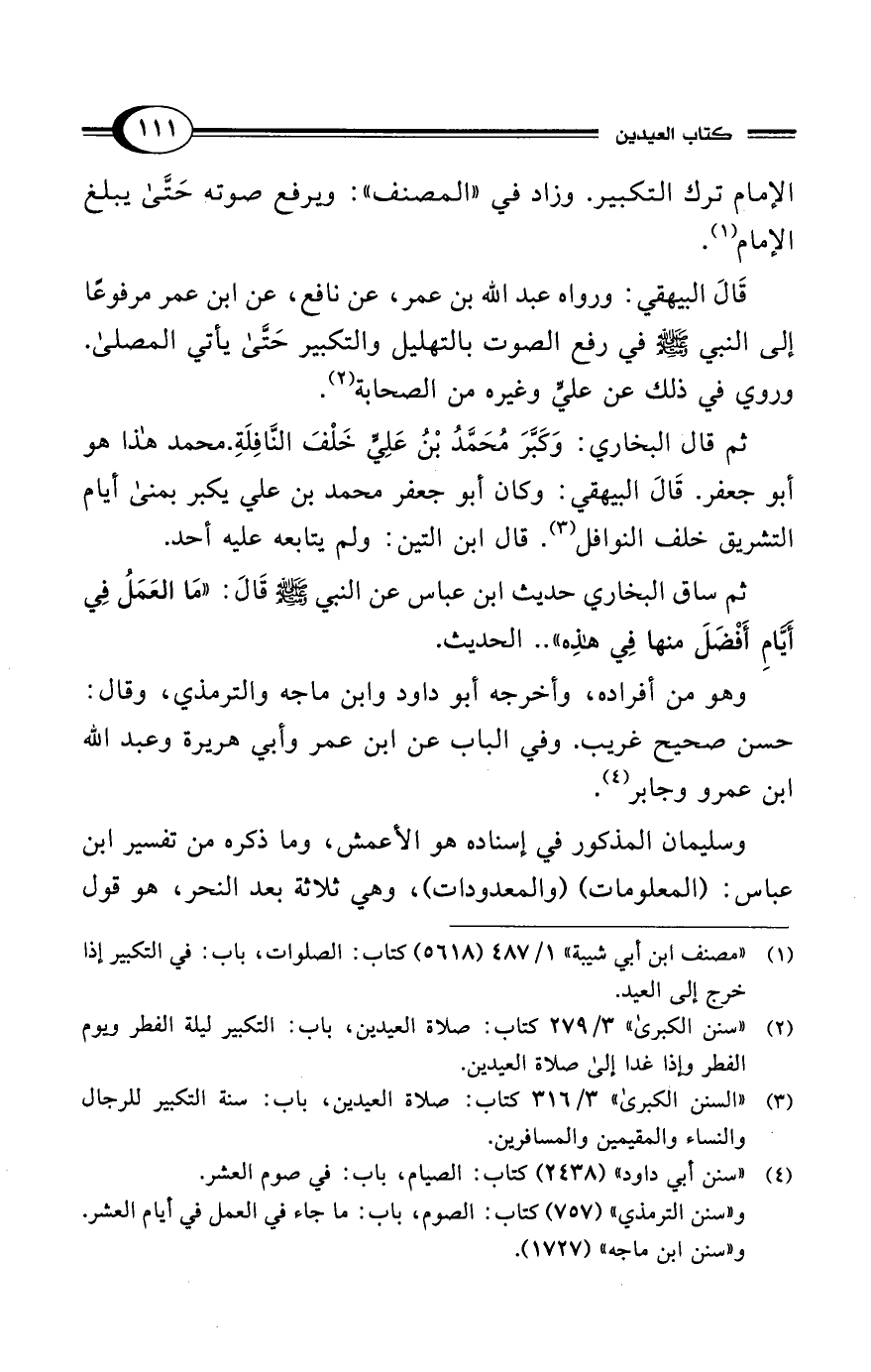 (¬2) "سنن الكبرى" 3/ 279 كتاب: صلاة العيدين، باب: التكبير ليلة الفطر ويوم الفطر وإذا غدا إلى صلاة العيدين.