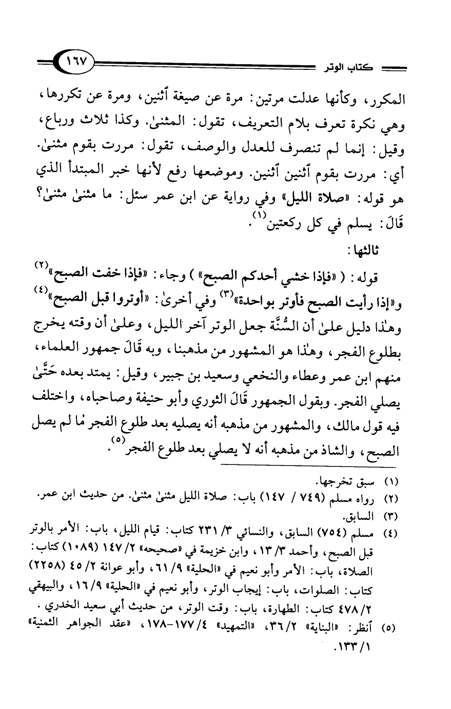 (¬2) رواه مسلم (749/ 147) باب: صلاة الليل مثنى مثنى. من حديث ابن عمر.