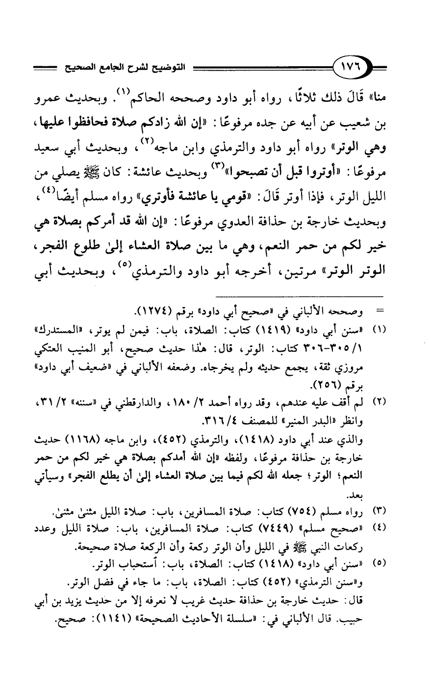 (¬5) "سنن أبي داود" (1418) كتاب: الصلاة، باب: استحباب الوتر.