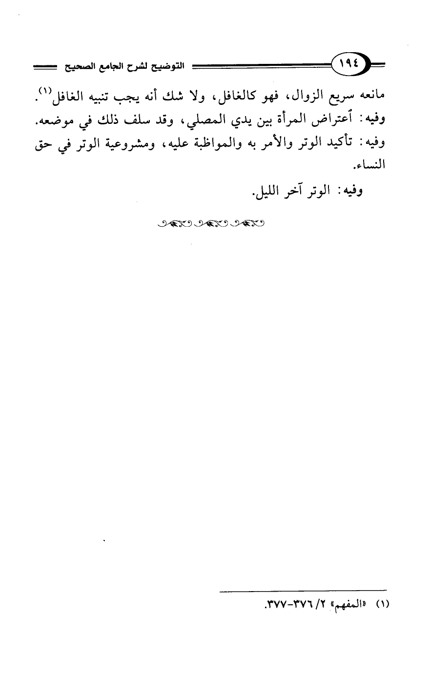 وفيه: تأكيد الوتر والأمر به والمواظبة عليه، ومشروعية الوتر في حق النساء.