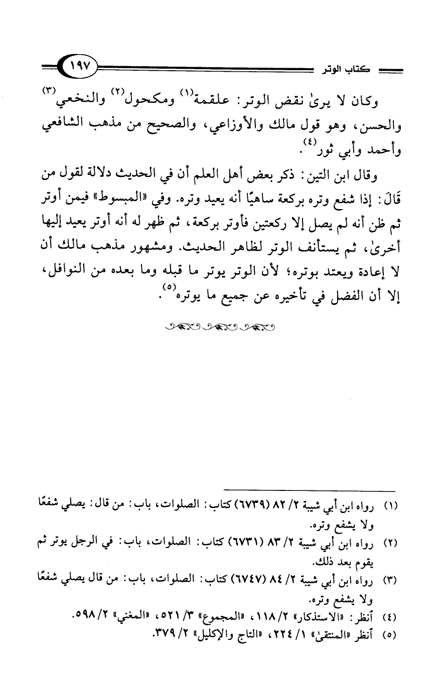 (¬1) رواه ابن أبي شيبة 2/ 82 (6739) كتاب: الصلوات، باب: من قال: يصلي شفعًا ولا يشفع وتره.