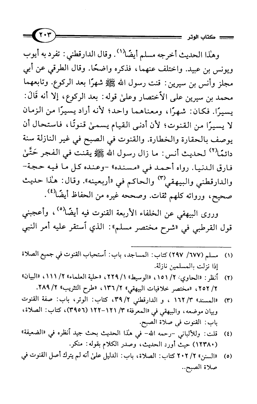 (¬5) "السنن" 2/ 202 كتاب: الصلاة، باب: الدليل على أنه لم يترك أجل القنوت في صلاة الصبح ..