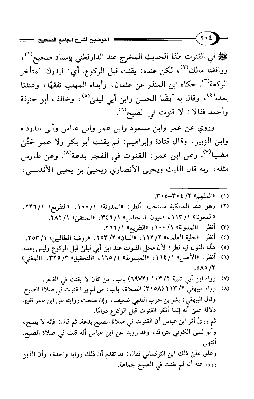(¬8) رواه البيهقي 2/ 213 (3158) الصلاة، باب: من لم ير القنوت في صلاة الصبح.