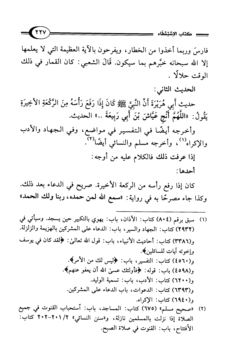 حديث أَبِي هُرَيْرَةَ أَنَّ النَّبِيَّ - صلى الله عليه وسلم - كَانَ إِذَا رَفَعَ رَأسَهُ مِنَ الرَّكْعَةِ الأخِيرَةِ يَقُولُ: "اللَّهُمَّ أَنْجِ عَيَّاشَ بْنَ أَبِي رَبِيعَةَ .. " الحديث.