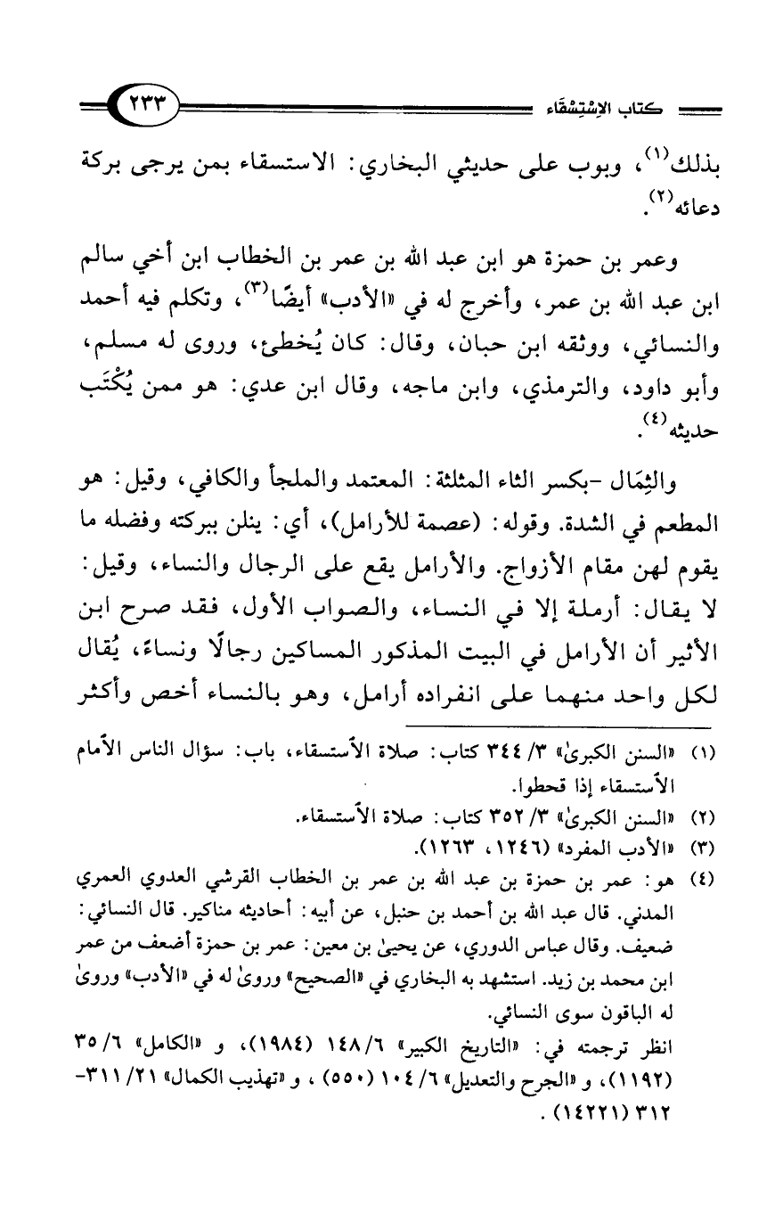 (¬4) هو: عمر بن حمزة بن عبد الله بن عمر بن الخطاب القرشي العدوي العمري المدني. قال عبد الله بن أحمد بن حنبل، عن أبيه: أحاديثه مناكير. قال النسائي: ضعيف. وقال عباس الدوري، عن يحيى بن معين: عمر بن حمزة أضعف من عمر ابن محمد بن زيد. استشهد به البخاري في "الصحيح" وروى له في "الأدب" وروى له الباقون سوى النسائي.