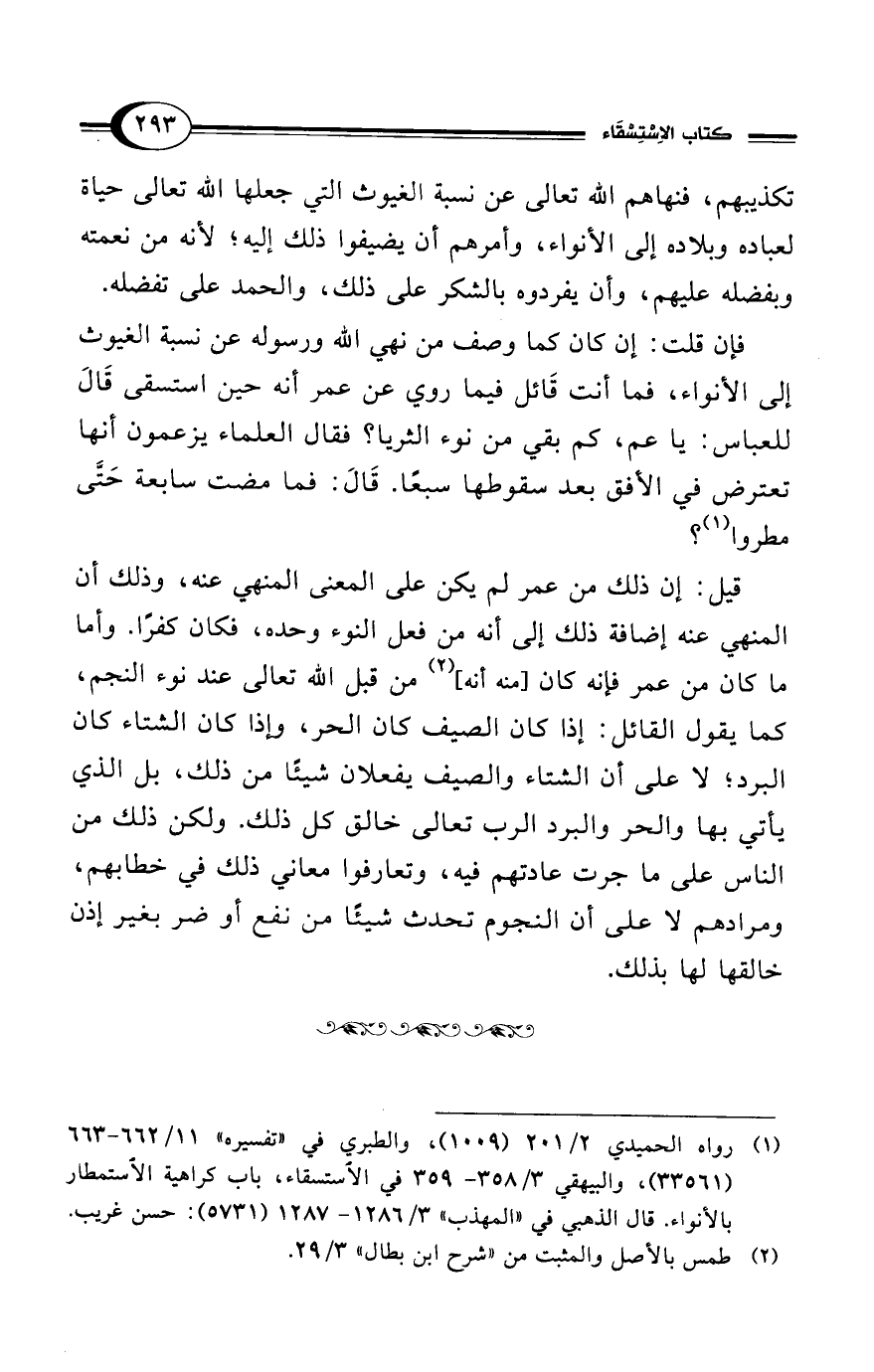 (¬1) رواه الحميدي 2/ 201 (1009)، والطبري في "تفسيره" 11/ 662 - 663 (33561)، والبيهقي 3/ 358 - 359 في الاستسقاء، باب كراهية الاستمطار بالأنواء. قال الذهبي في "المهذب" 3/ 1286 - 1287 (5731): حسن غريب.