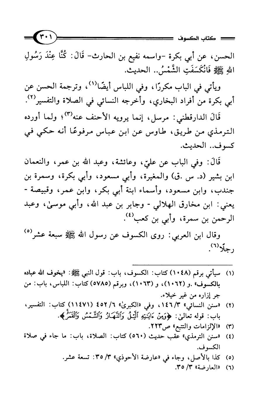 (¬4) "سنن الترمذي" عقب حديث (560) كتاب: الصلاة، باب: ما جاء في صلاة الكسوف.