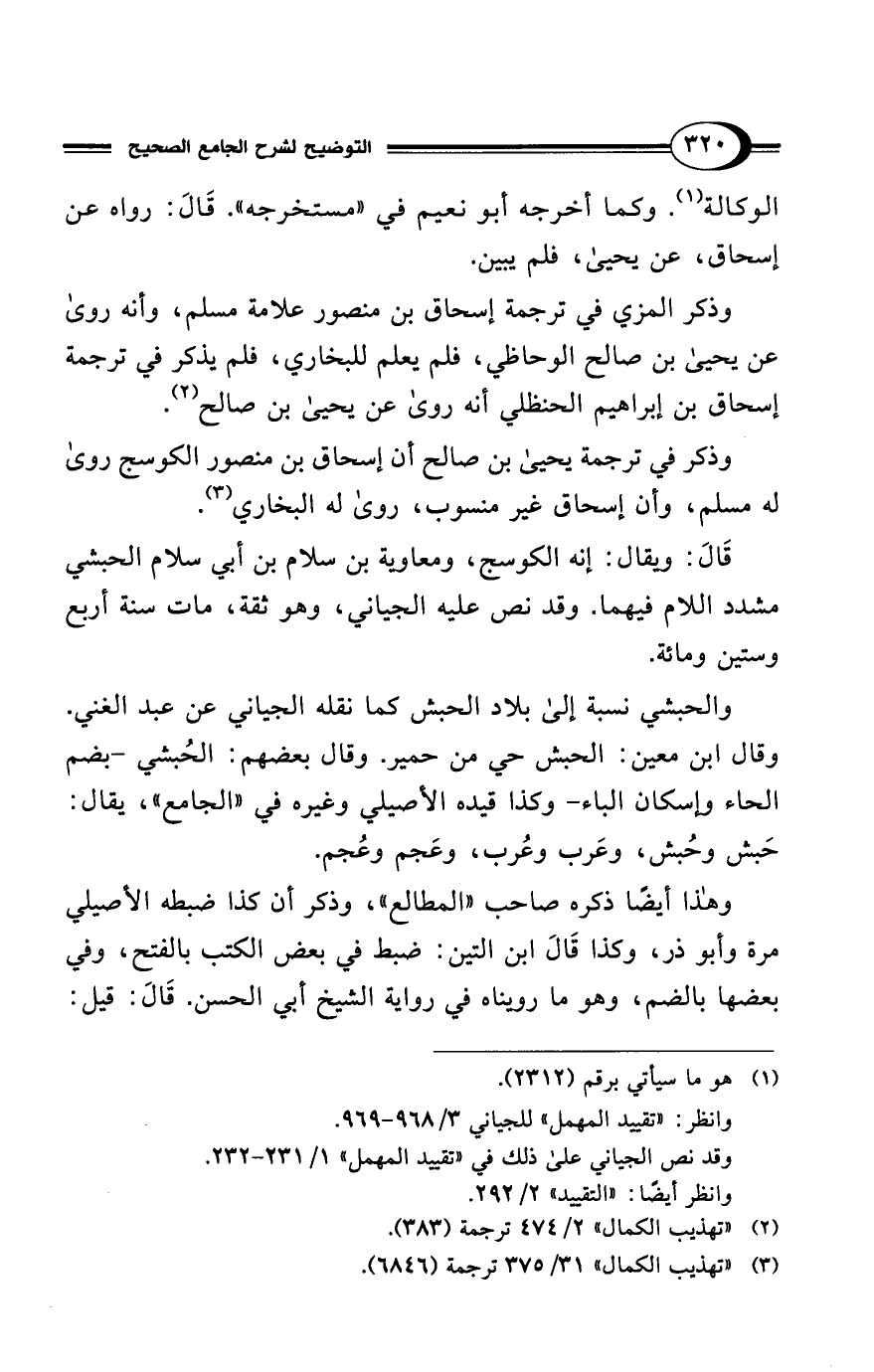 وذكر المزي في ترجمة إسحاق بن منصور علامة مسلم، وأنه روى عن يحيى بن صالح الوحاظي، فلم يعلم للبخاري، فلم يذكر في ترجمة إسحاق بن إبراهيم الحنظلي أنه روى عن يحيى بن صالح (¬2).