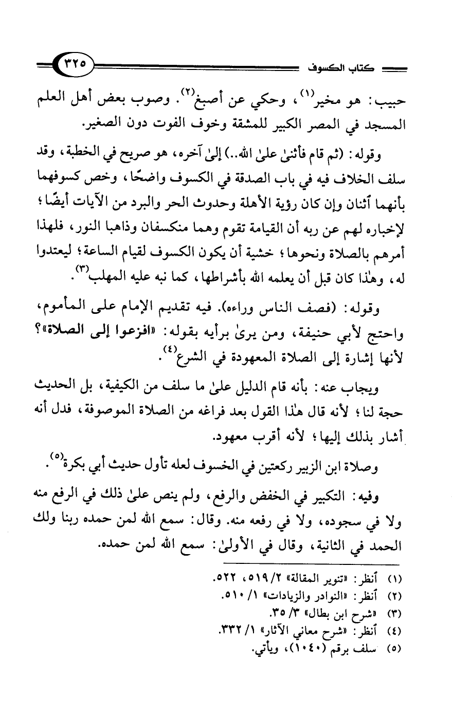 وصلاة ابن الزبير ركعتين في الخسوف لعله تأول حديث أبي بكرة (¬5).