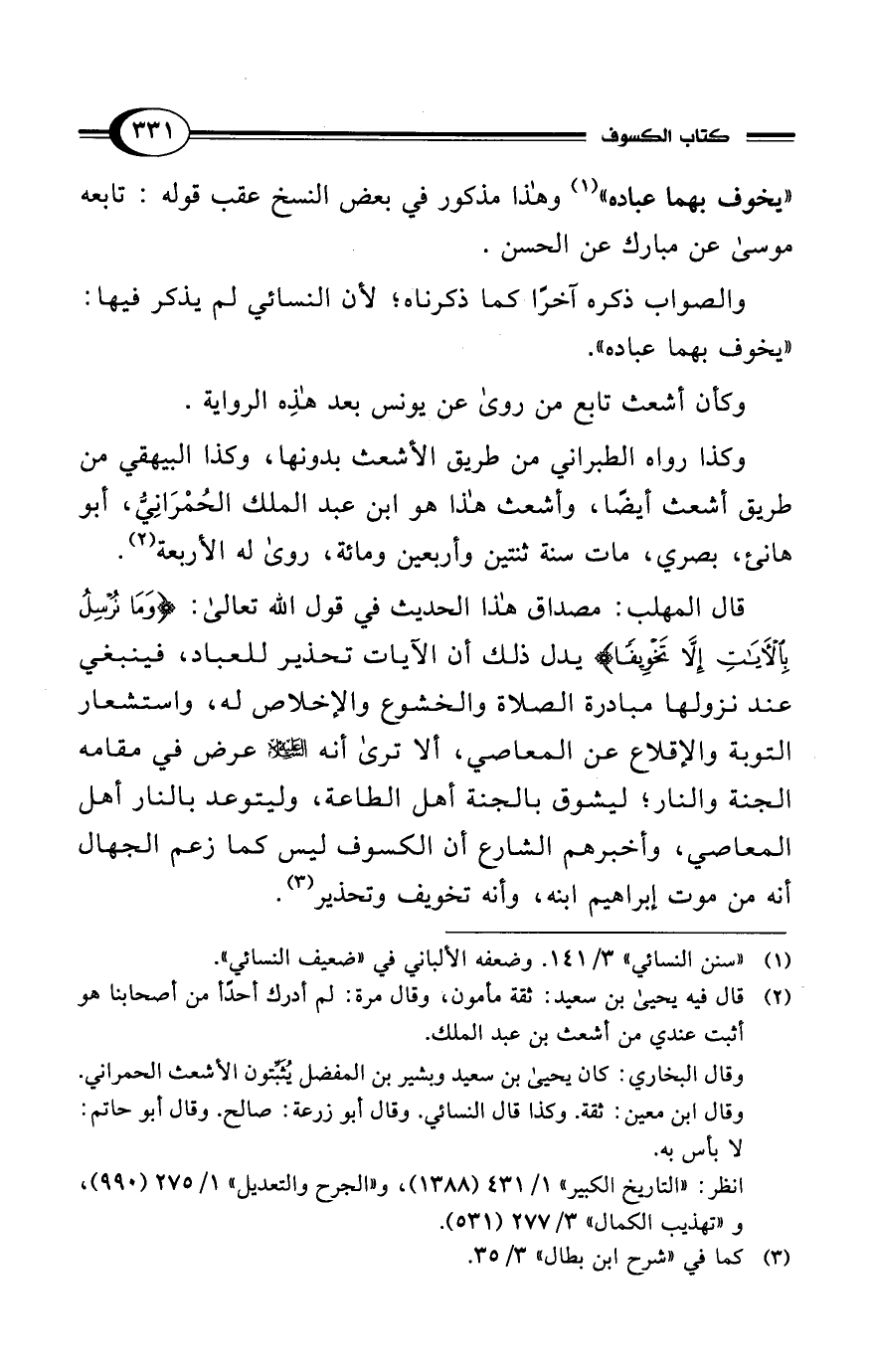 والصواب ذكره آخرًا كما ذكرناه؛ لأن النسائي لم يذكر فيها: "يخوف بهما عباده".