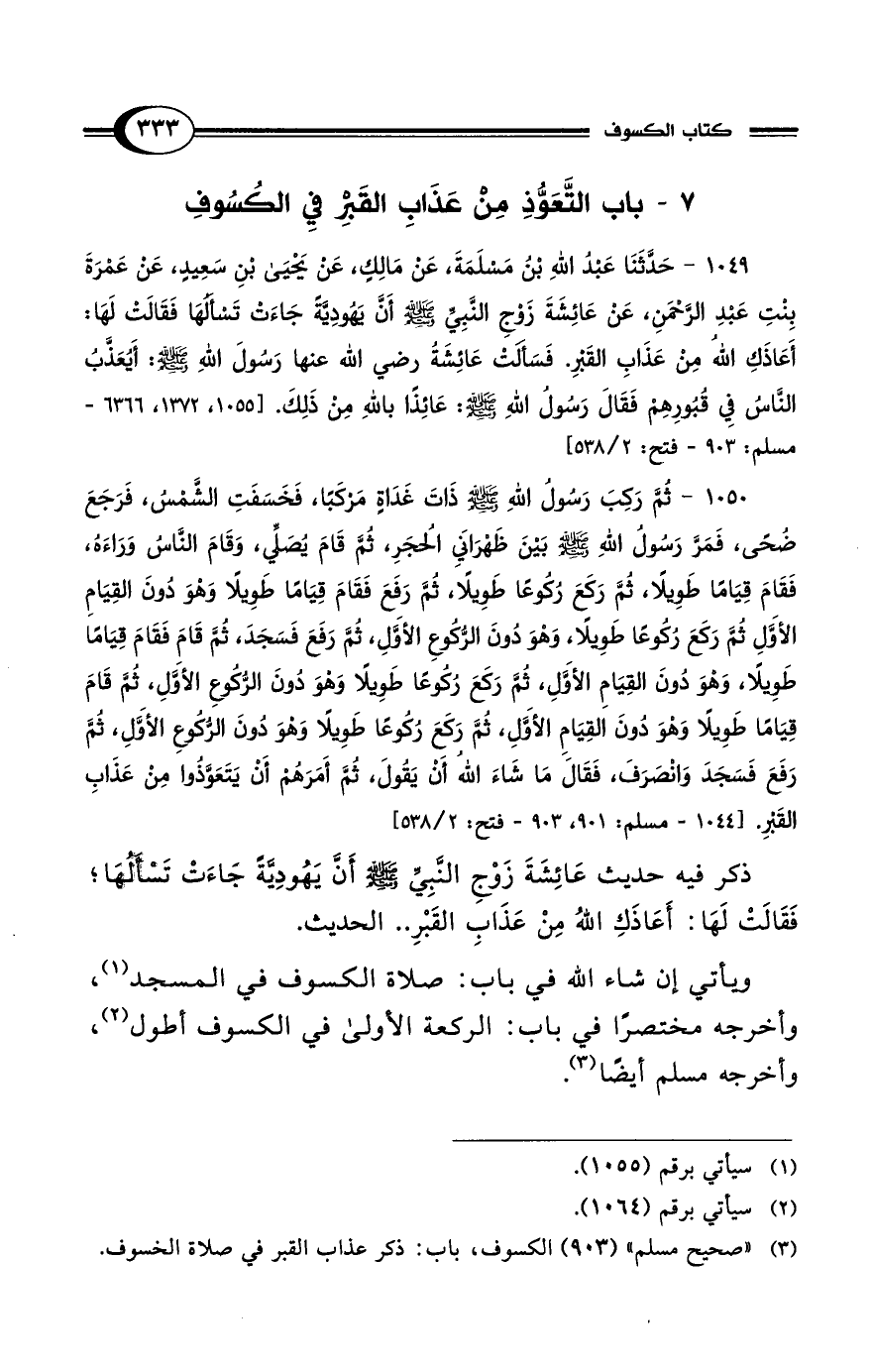(¬3) "صحيح مسلم" (903) الكسوف، باب: ذكر عذاب القبر في صلاة الخسوف.