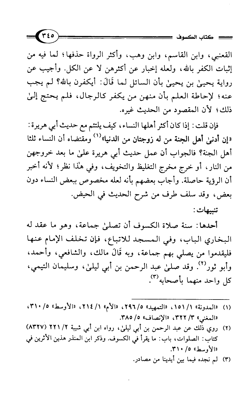 (¬1) "المدونة" 1/ 151، "التمهيد" 5/ 296، "الأم" 1/ 214، "الأوسط" 5/ 310، "المغني" 3/ 322، "الإنصاف" 5/ 385.