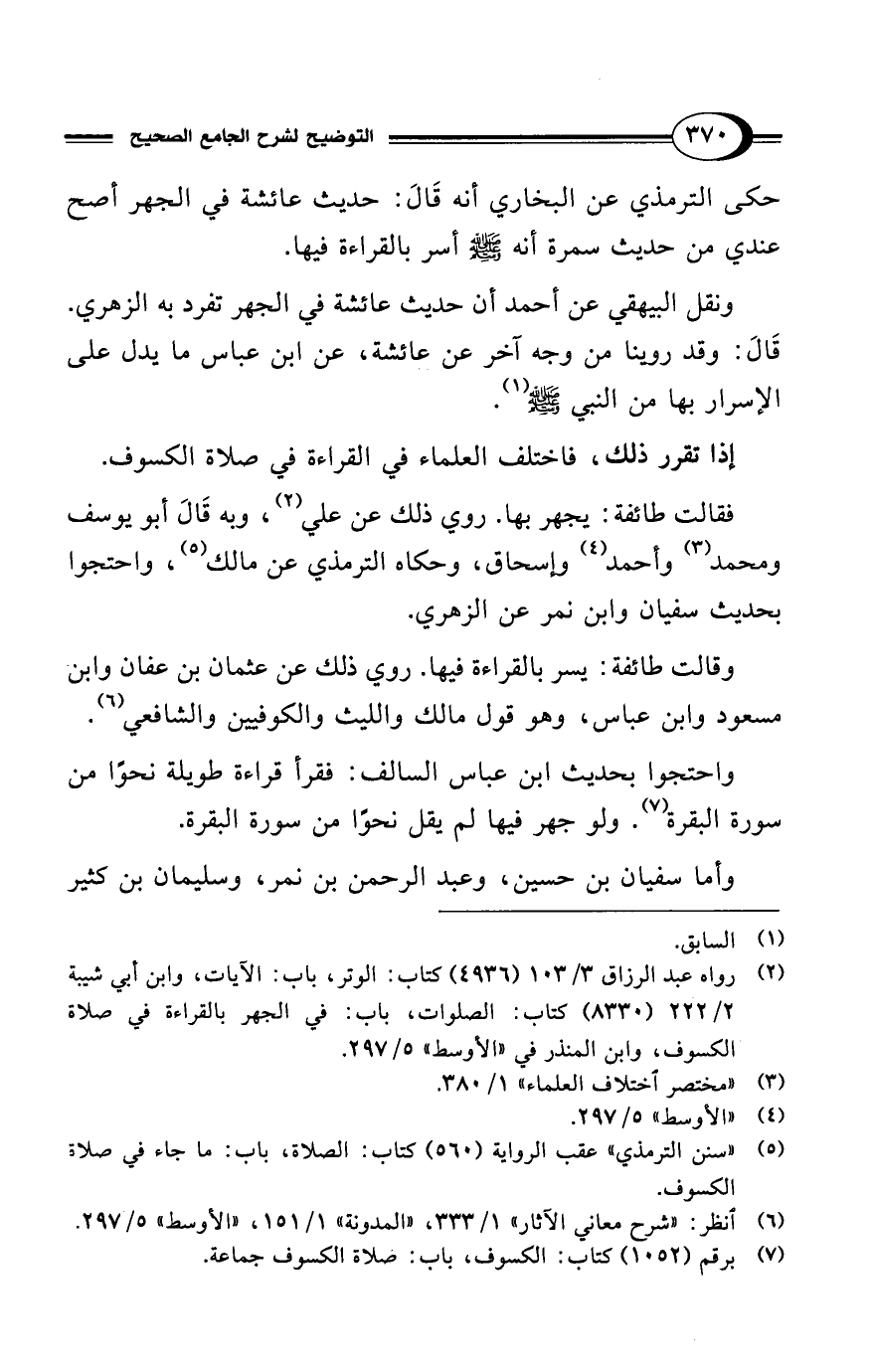 (¬5) "سنن الترمذي" عقب الرواية (560) كتاب: الصلاة، باب: ما جاء في صلاة الكسوف.