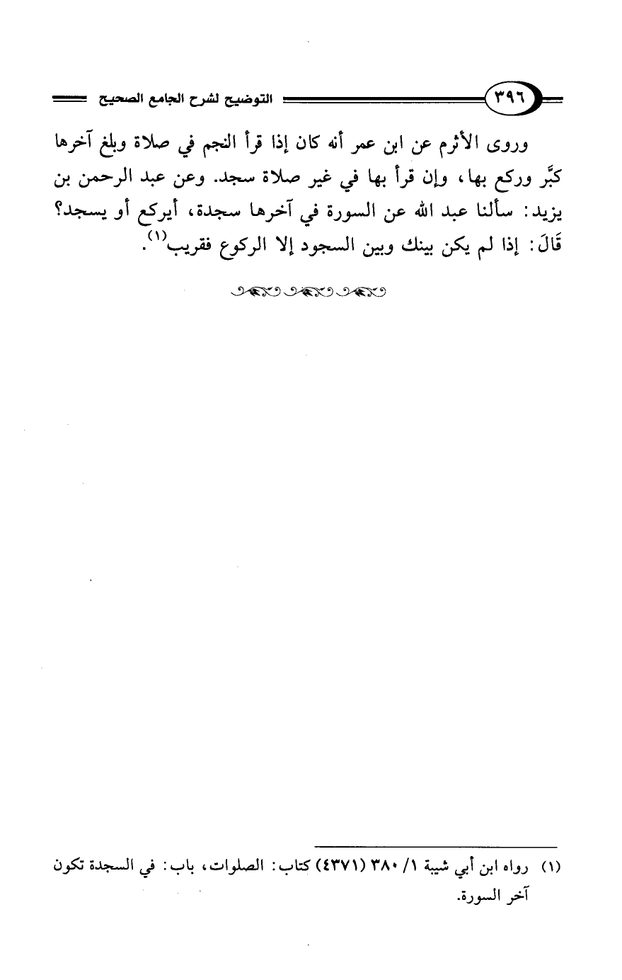 (¬1) رواه ابن أبي شيبة 1/ 380 (4371) كتاب: الصلوات، باب: في السجدة تكون آخر السورة.