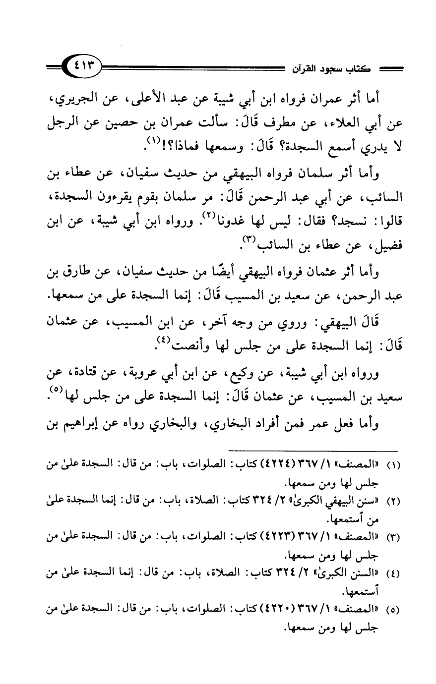 (¬5) "المصنف" 1/ 367 (4220) كتاب: الصلوات، باب: من قال: السجدة على من جلس لها ومن سمعها.
